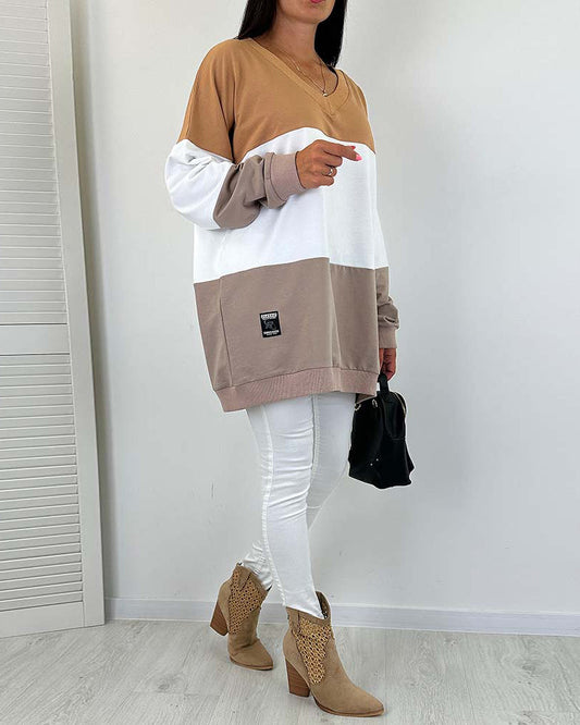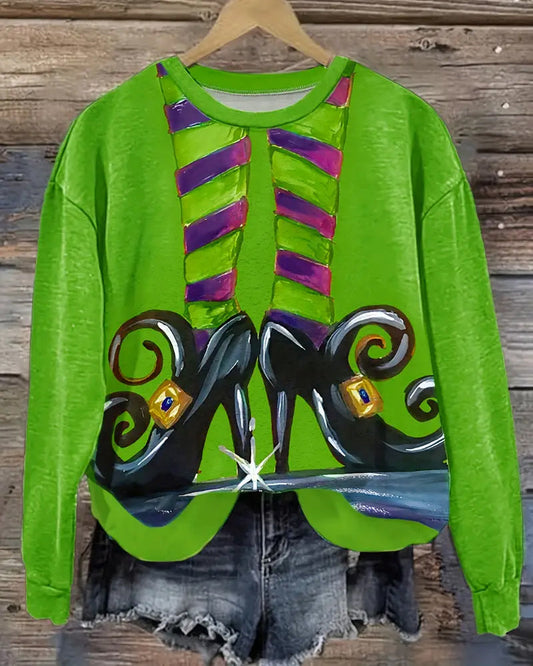 Casual Christmas tree print contrast long sleeve sweatshirt