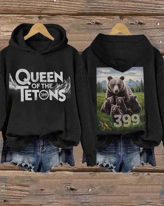 Women's Retro Grizzly 399 The Queen Of The Tetons 1996-2024 Print Hoodie