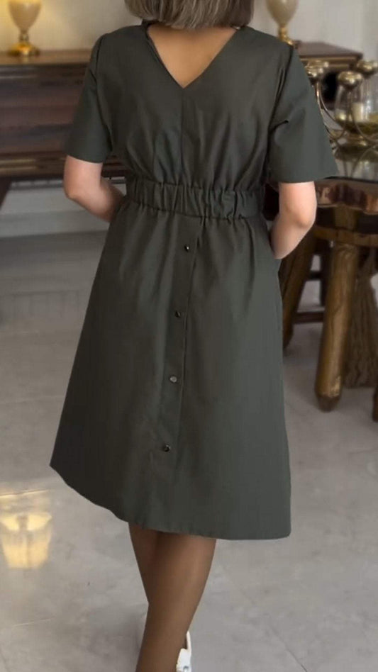 Women's Round Neck Short Sleeve Casual Cotton and Linen Dress