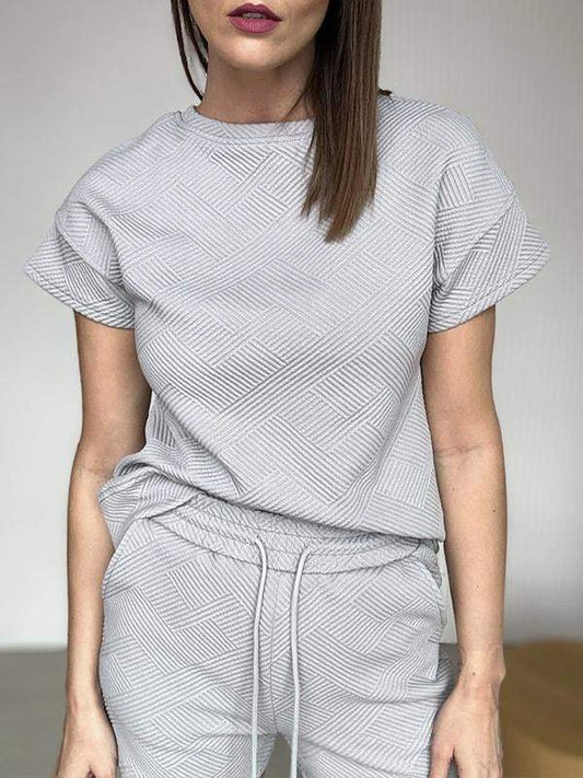 Women's Round Neck Short Sleeve Textured Fabric Casual Suit