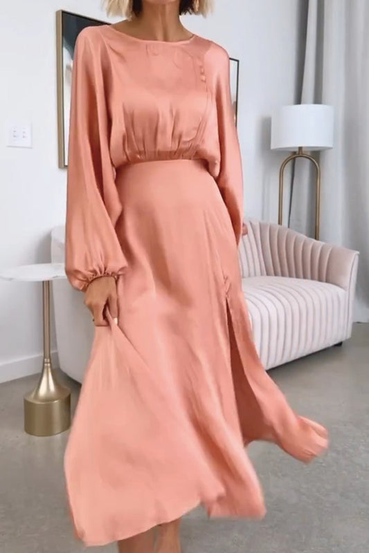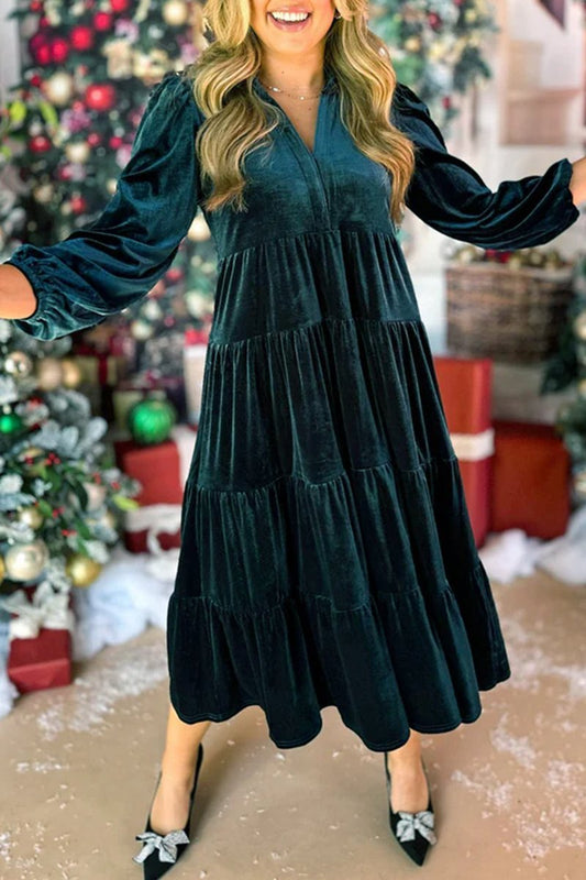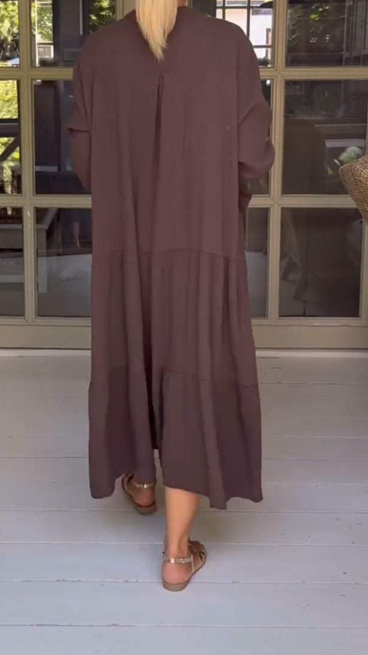 Women's Solid Color V-neck Long-sleeved Casual Dress
