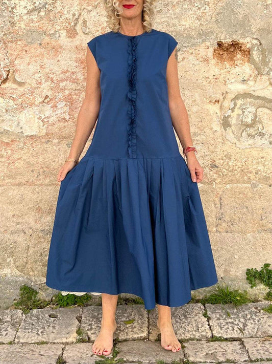 Women's Solid Color Sleeveless Cotton And Linen Dress