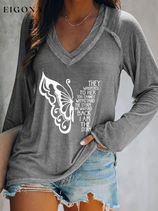 Women's They Whispered To Her You Cannot Withstand The Storm She Whispered Back I Am The Storm Butterfly Print Tee Shirt