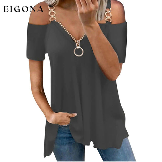 Women's T-Shirt Plain Ruffle Cold Shoulder Short Sleeve