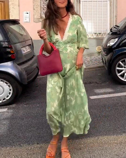 Women's V -neck casual loose short sleeve bag shorts two -piece suit two -piece suit