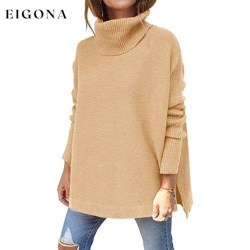 Women's Turtleneck Oversized Sweaters Long Batwing Sleeve Spilt Hem Tunic