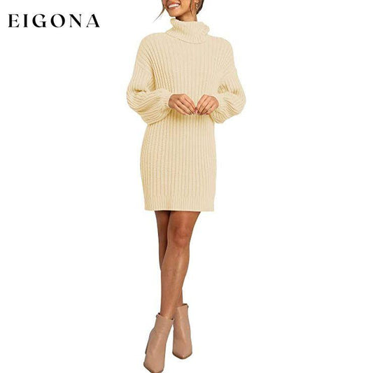 Women's Turtleneck Long Lantern Sleeve Casual Loose Oversized Sweater Dress