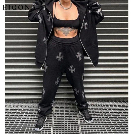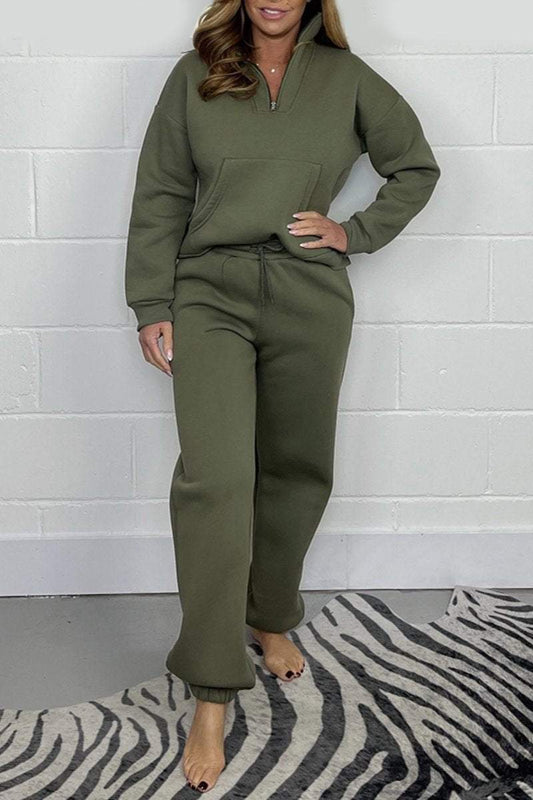 Women's Zip-up Lapel Hoodie Top and Pant Suit