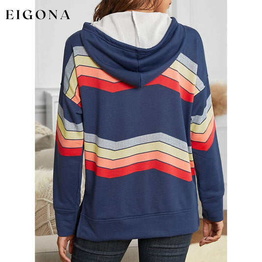 Womens Casual Hoodie Striped Printed Sweatshirts Long Sleeve Drawstring Pullover