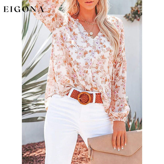 Womens Casual Boho Floral Print V Neck Long Sleeve Loose Blouse