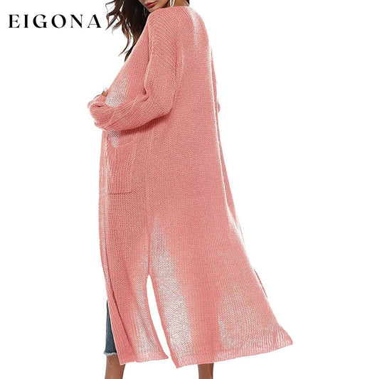 Womens Casual Long Sleeve Split Open Cardigan Knit Long Cardigan Sweaters with Pockets