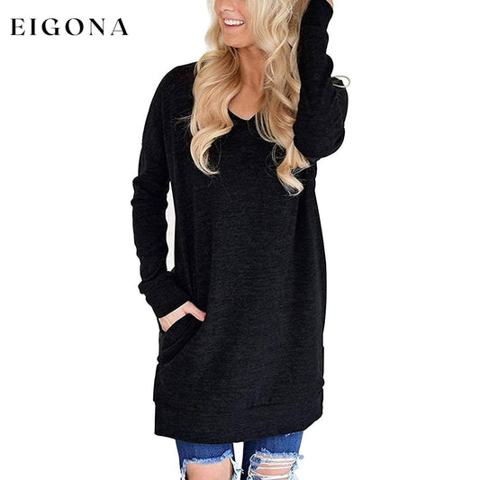 Womens Casual Long Sleeves Solid V-Neck Tunics Shirt Tops with Pockets