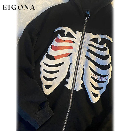 Women's Zip Up Skeleton Letter Hoodie Sweatshirt