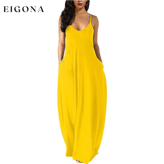 Womens Casual Sleeveless Plus Size Loose Plain Long Maxi Dress with Pockets