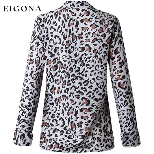 Womens Casual Tops V Neck Leopard Tunic Long Sleeve Button Down Shirts Top