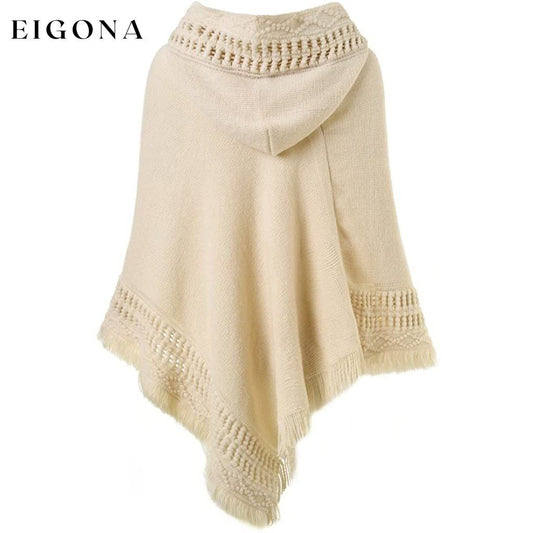 Womens Hooded Cape with Fringed Hem, Crochet Poncho Knitting Patterns