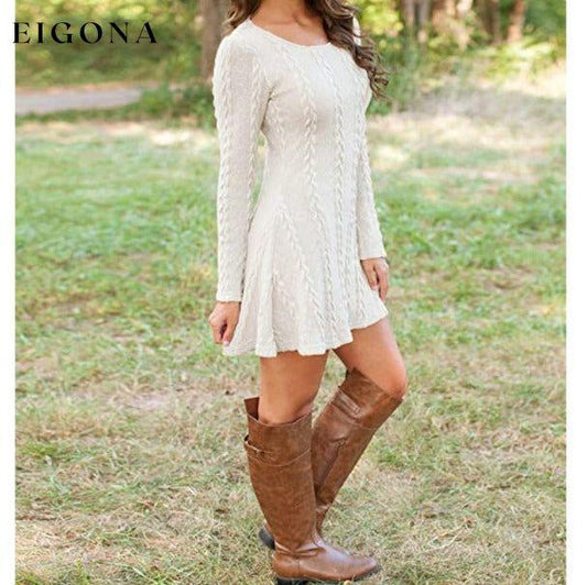Womens Knitted Crewneck Sweater Dress
