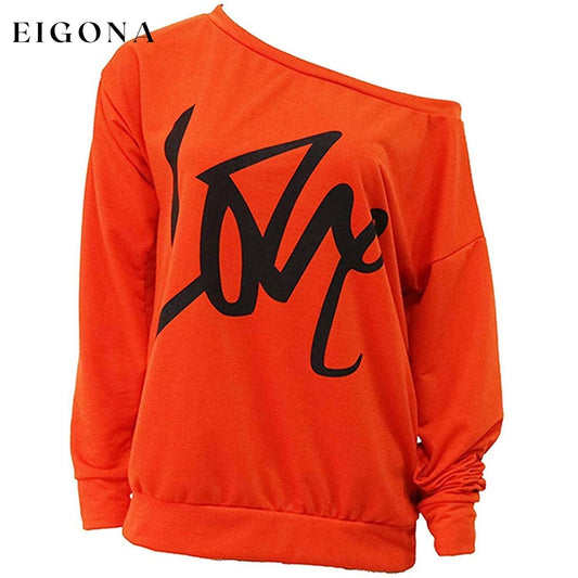 Womens Love Letter Printed Off Shoulder Pullover Sweatshirt Slouchy Tops Shirts
