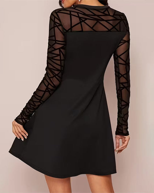 Round Neck Short Sleeve Waist-Defined A-Line Dress