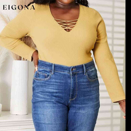 Plus Size Sexy Plunge Long Sleeve Bodysuit
