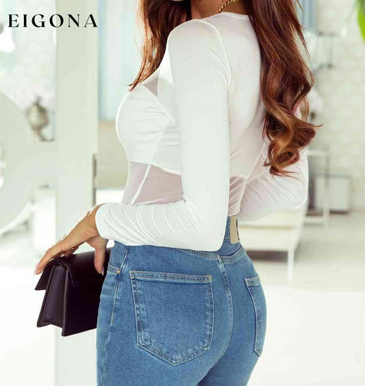 Round Neck Long Sleeve Sheer Shirt, Long Sleeve Top, Bodysuit
