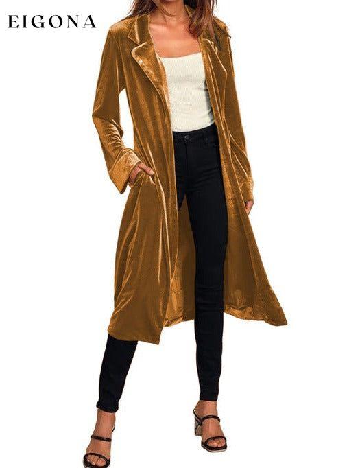Women's round neck belted gold velvet Long Sleeve Maxi Dress