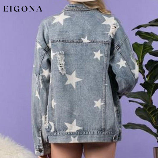 Collared Neck Dropped Shoulder Button-Down Denim Jacket