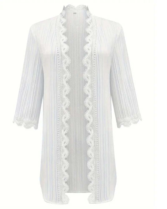 Mid-Length Sleeve Lace Trim Coat