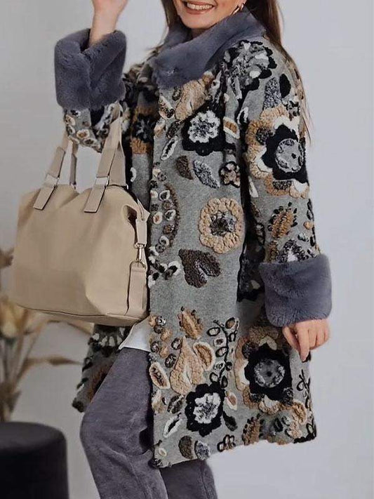 Women's Fur Collar Printed Patchwork Coat