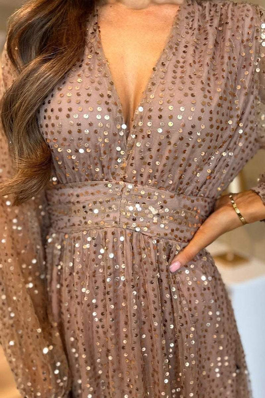 Women's V-neck Sequined Dress
