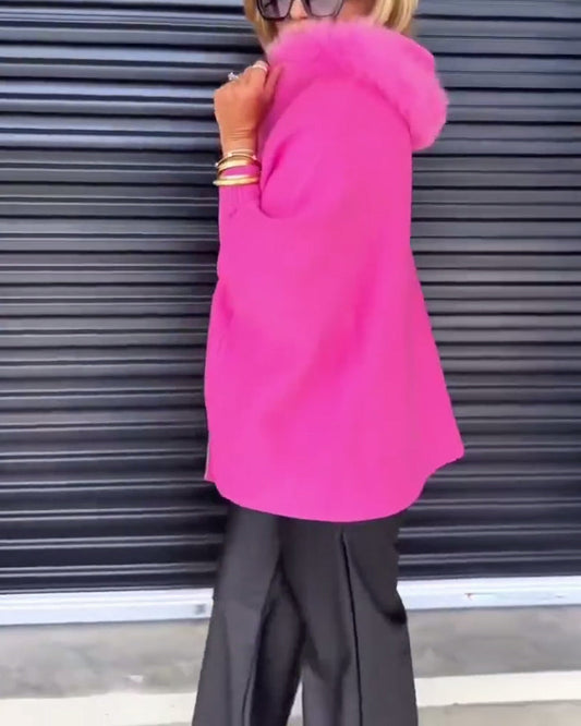 Fashion Solid Color Fur Collar Coat