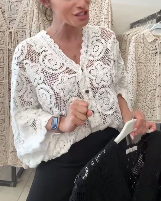 Women's Lapel Lace Hollow Suit Jacket