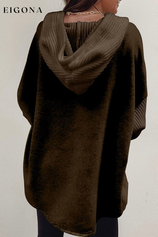 Dark Brown Button Up Contrast Knitted Sleeves Hooded Jacket