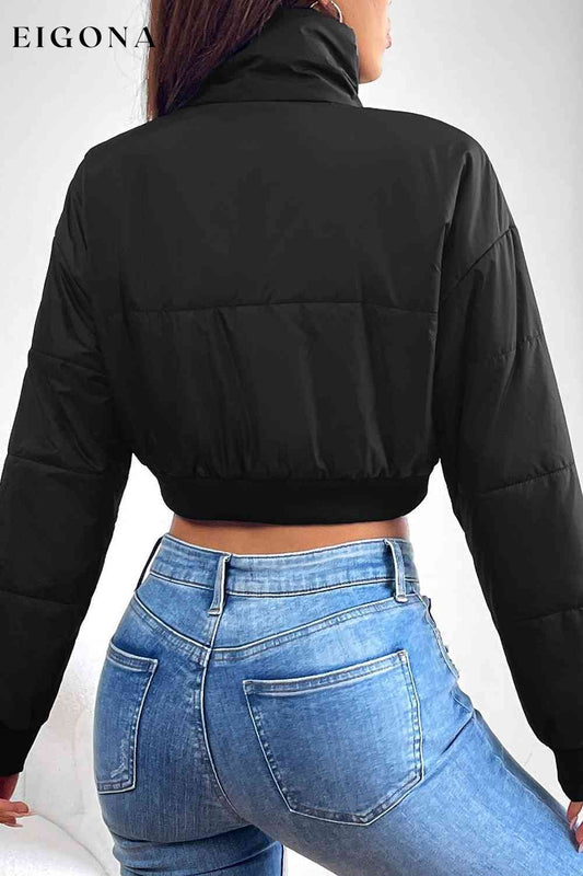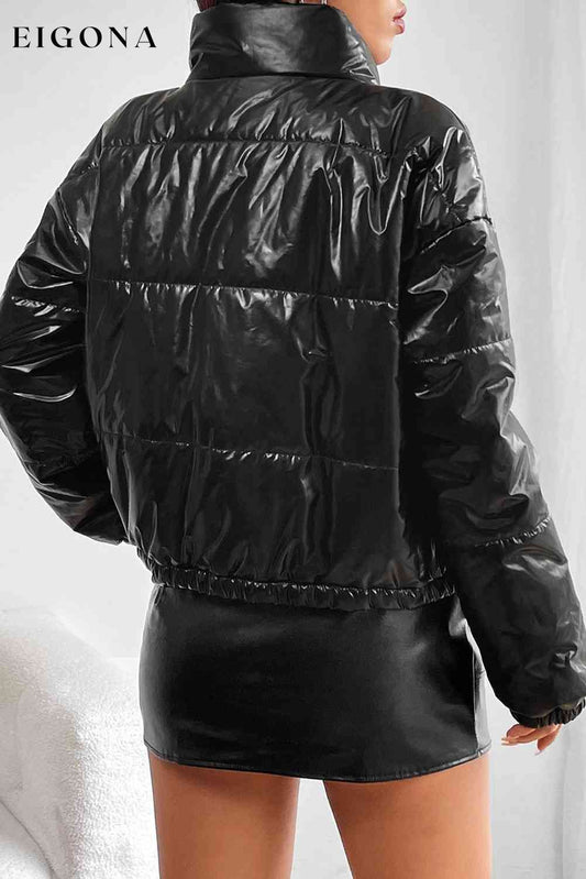 Snap and Zip Closure Crop Puffy Sexy Winter Coat
