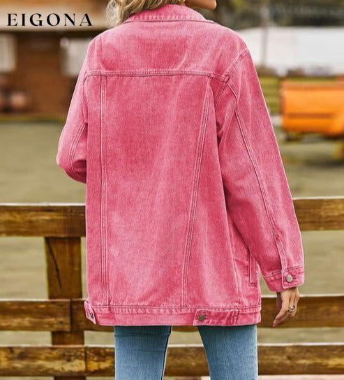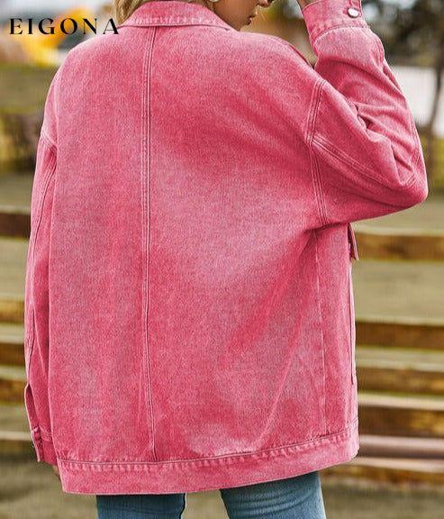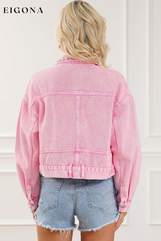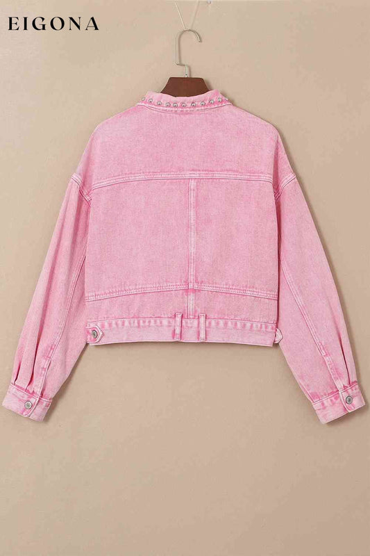 Pink Rivet Studded Pocketed Pink Denim Jacket