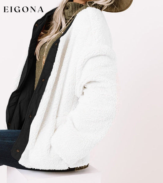 New white woolen cardigan jacket fan-shaped buttonless placket design thickened women's jacket