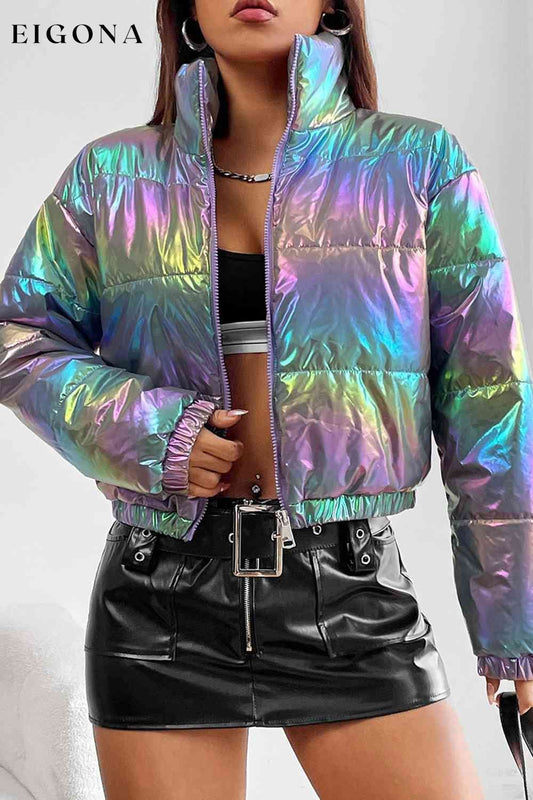 Gradient Zip-Up Oil Spill Chrome Winter Coat