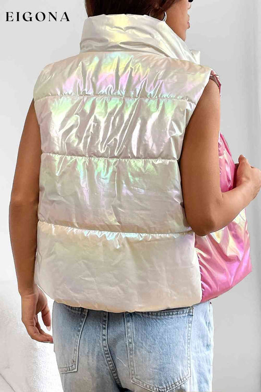 Turtleneck Color Block Pink Chrome Sleeveless Vest