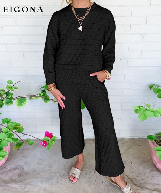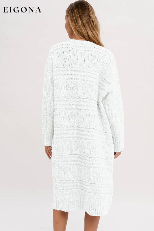 Black Pointelle Knit Button V Neck Drop Shoulder Sweater