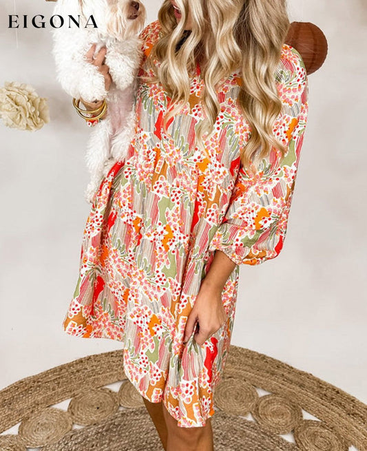 Multicolour Split Neck Puff Sleeve Flowy Printed Dress