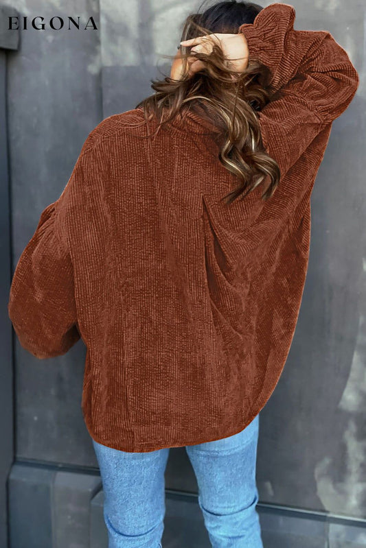 Coffee Textured Corduroy Puff Sleeve Shacket