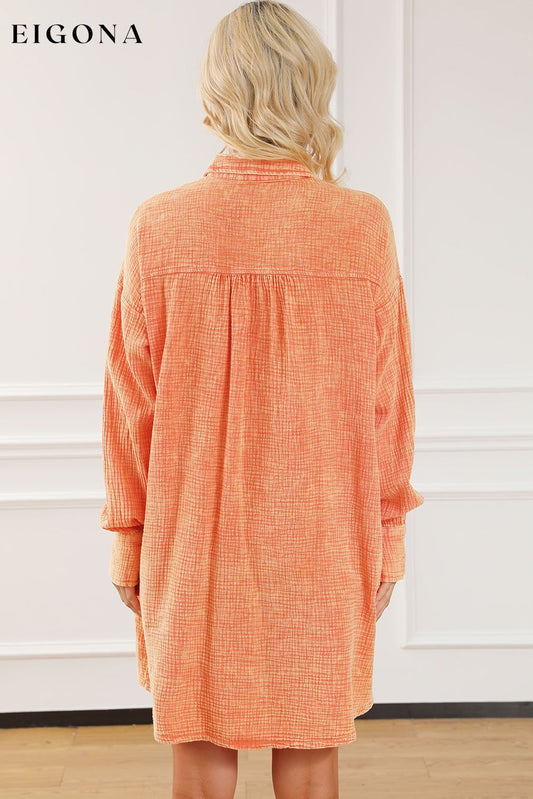 Orange Crinkled Dual Chest Pocket Oversized Shirt Dress