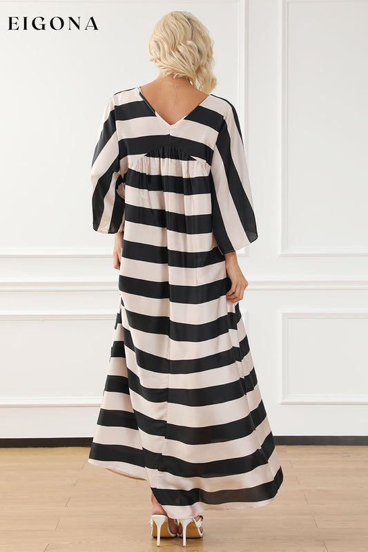 Black V Neck Kimono Sleeve Striped Maxi Dress