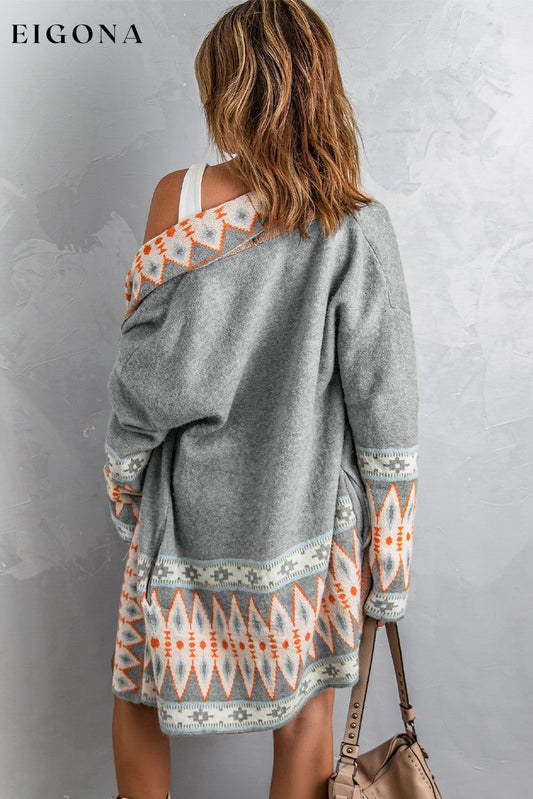 Green Printed Pearl Button V Neck Sweater Cardigan