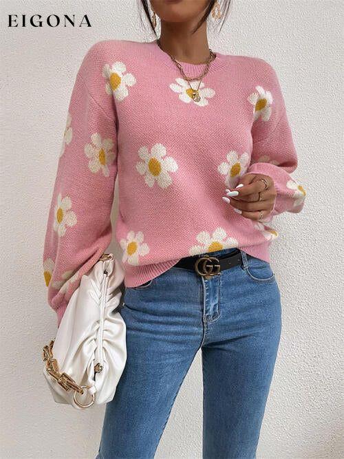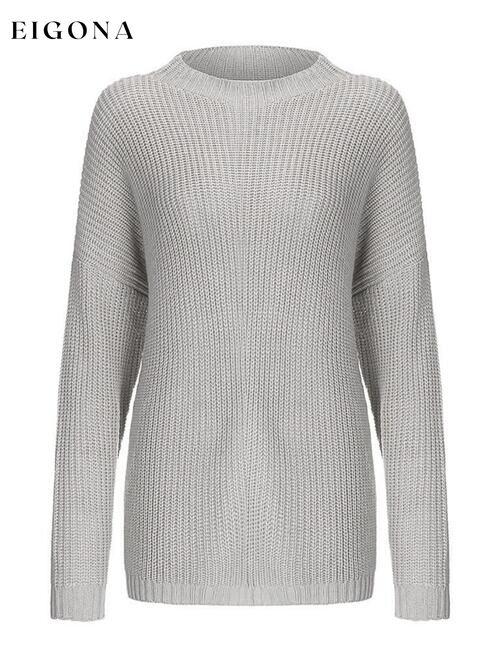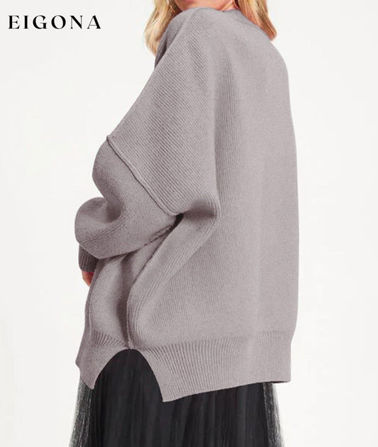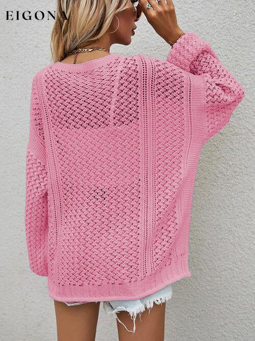 Openwork Round Neck Long Sleeve Slit Oversized Fashion Sweater