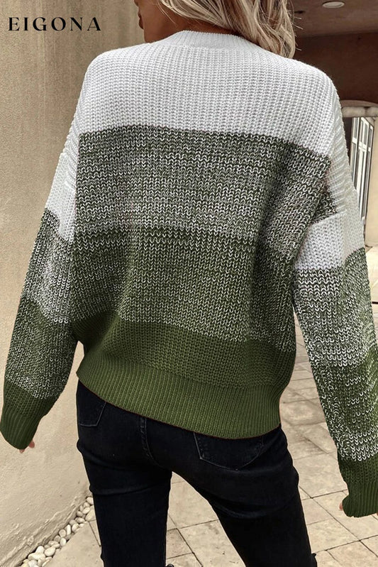 Pickle Green Color Block Drop Shoulder Ribbed Trim Sweater
