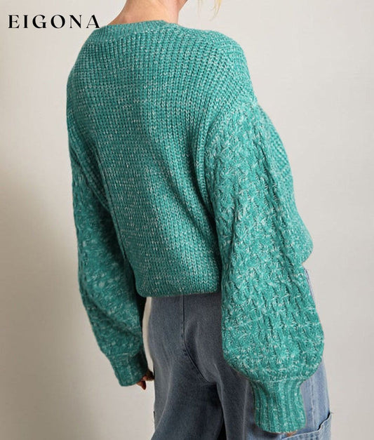 Sea Green Cable Knit Sleeve Drop Shoulder Sweater
