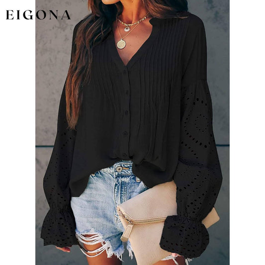 Women's Long Sleeve Cutout Lace Button Down Shirt