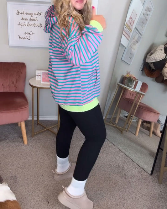Lässiger Hoodie mit Streifenmuster und Kordelzug
