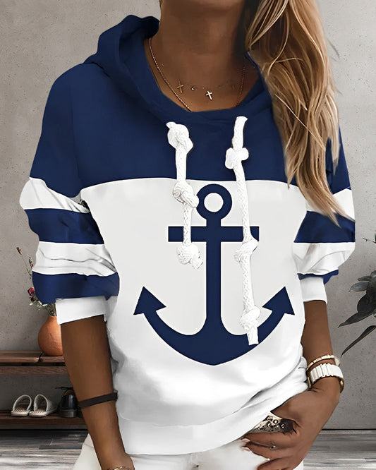 Kapuzenpullover mit Streifen- und Anker-Print